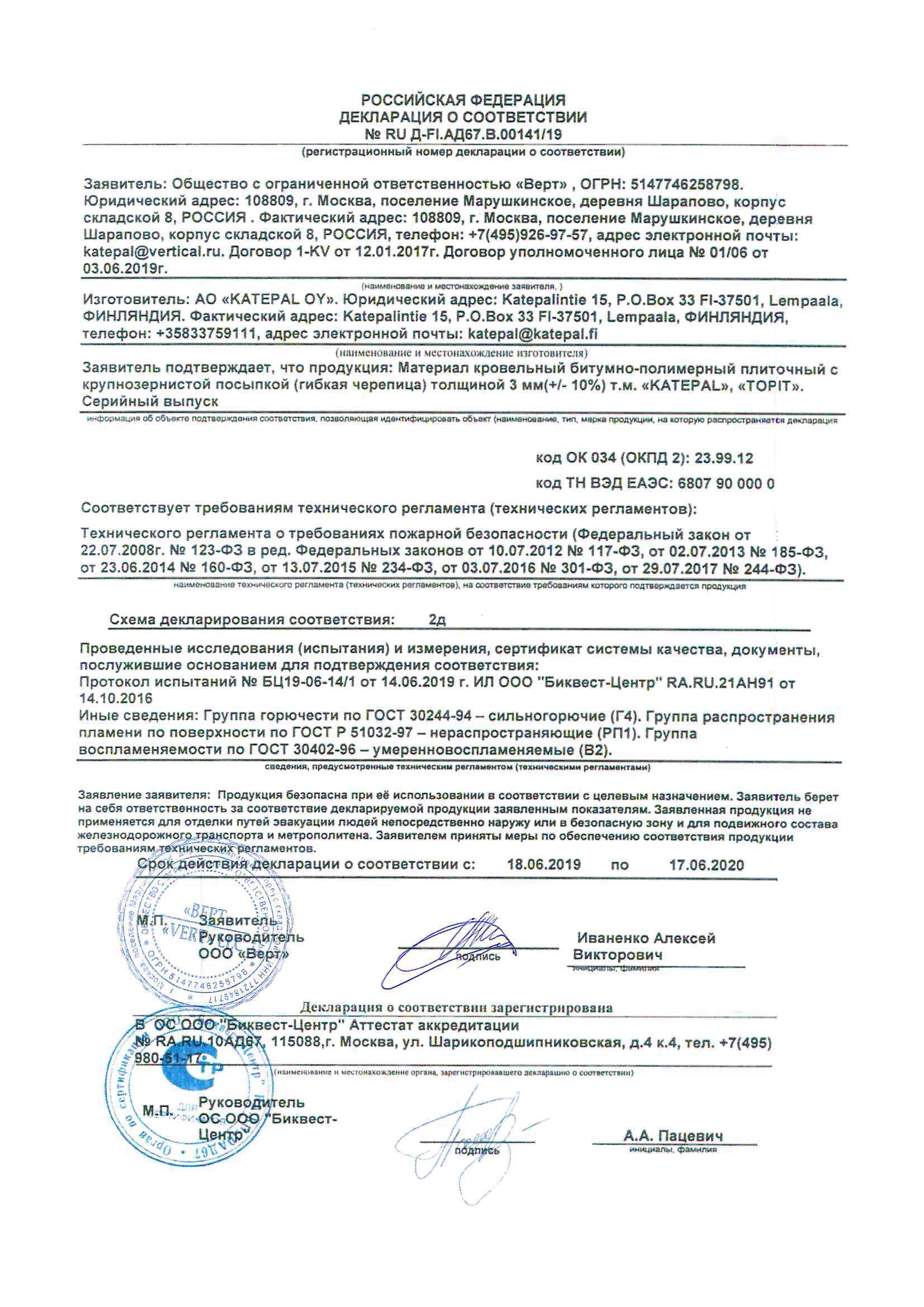 Сертификаты гибкой черепицы